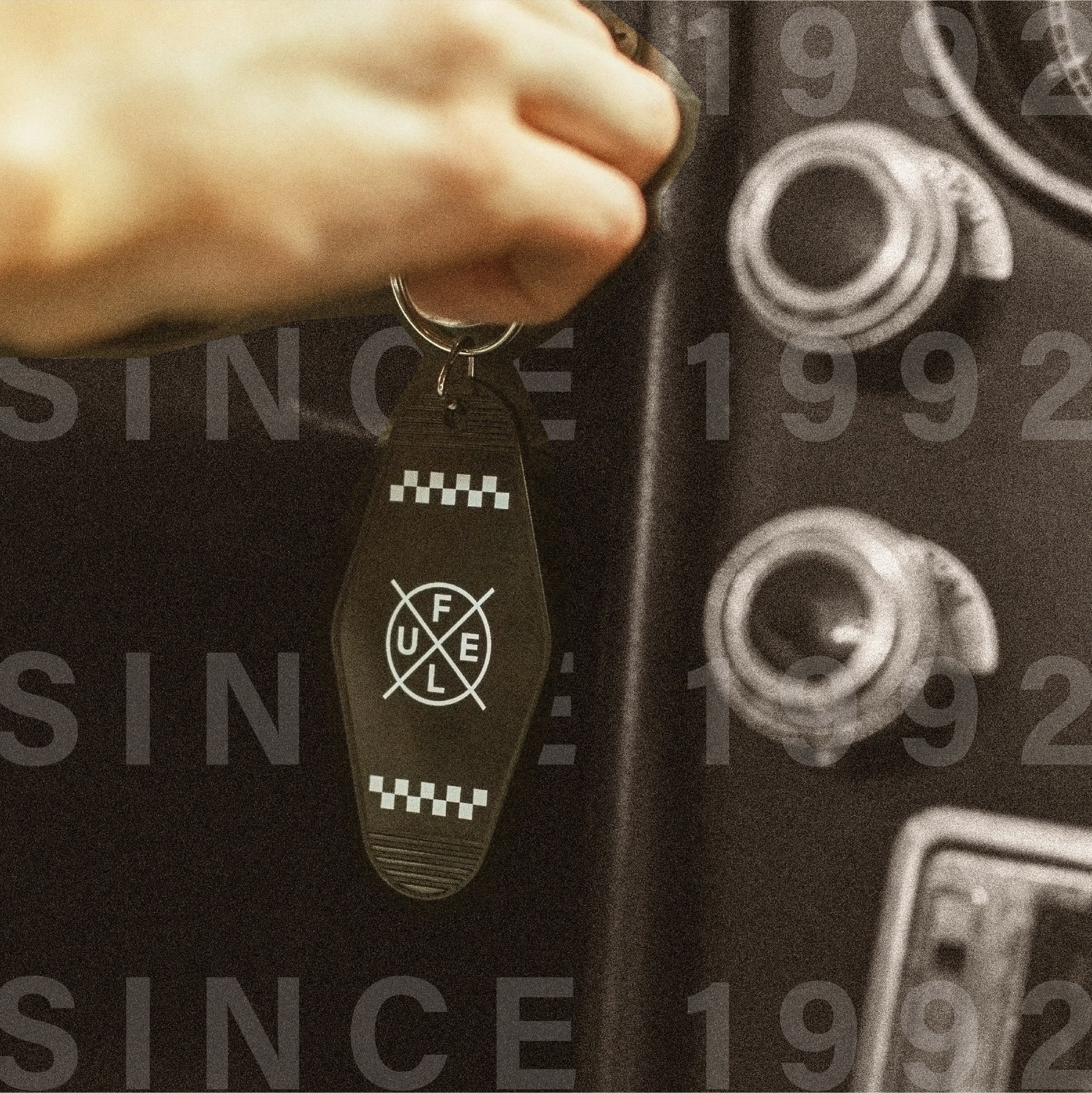 Kickstart your drive with a rad vintage motel inspired keychain.