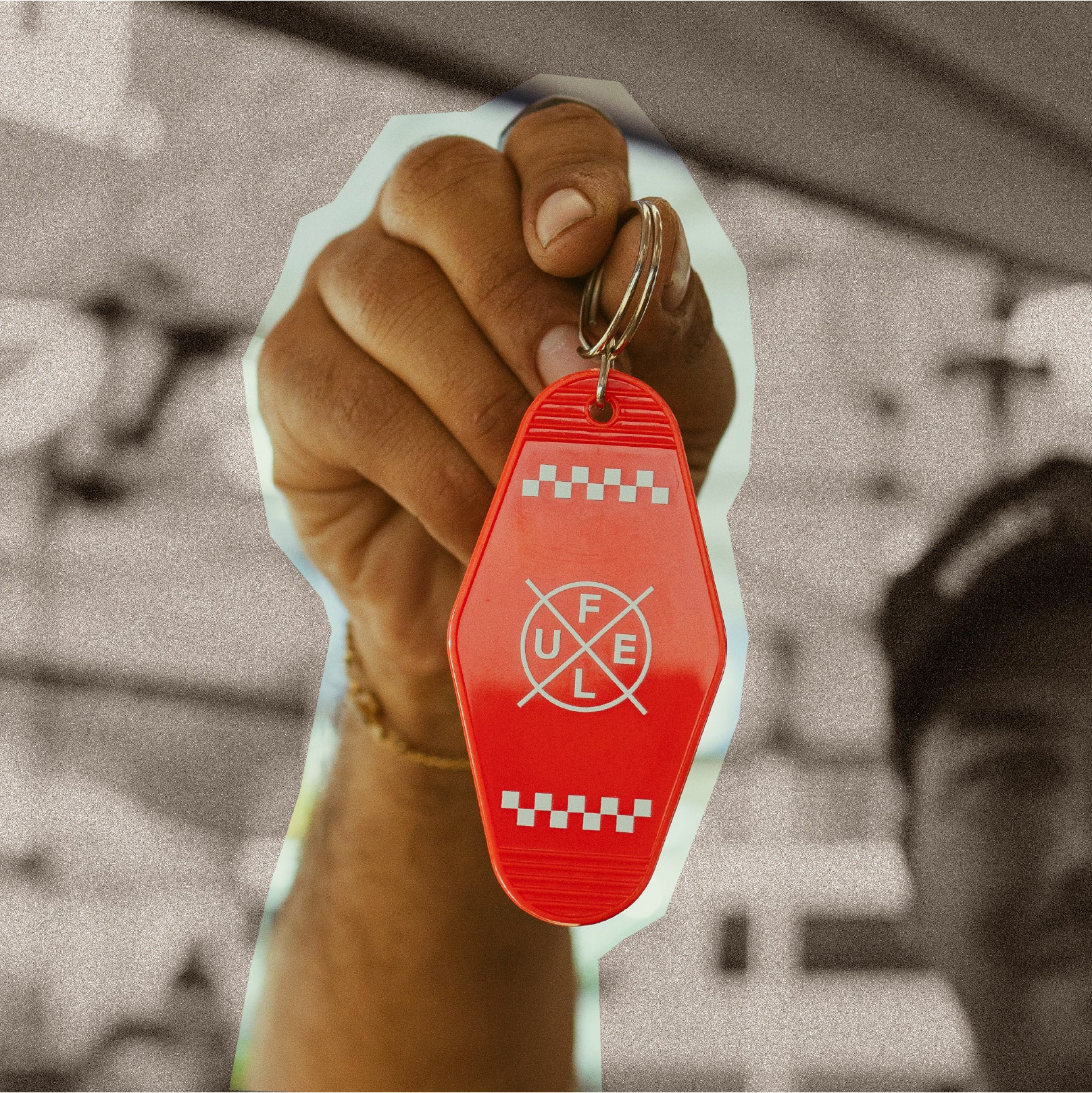 Kickstart your drive with a rad vintage motel inspired keychain.